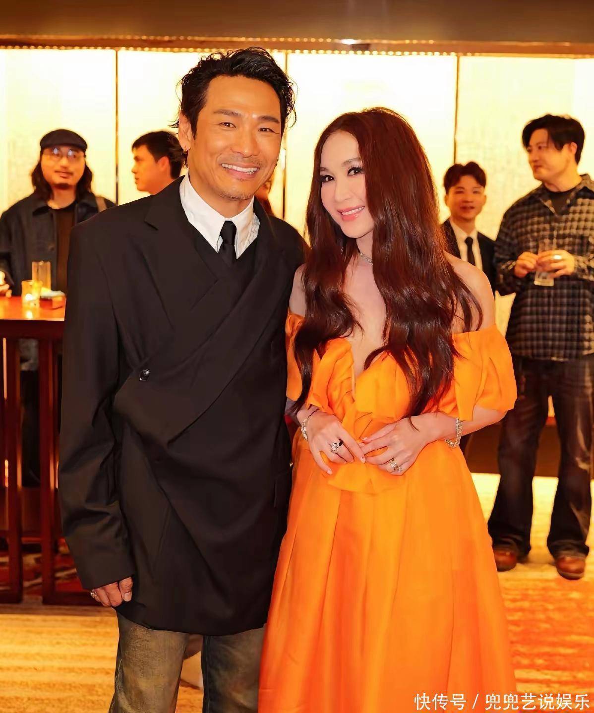 在合影环节,温碧霞与古天乐的同框格外吸睛。古天乐身着蓝色牛仔外套,内搭简约白色衬衫,造型低调大气、随性不失格调,脸上佩戴一副茶色墨镜,酷帅有型。两人并肩面对镜头,笑容自然亲和,互动温馨,宛如亲姐弟一般,气场契合又暖意满满。