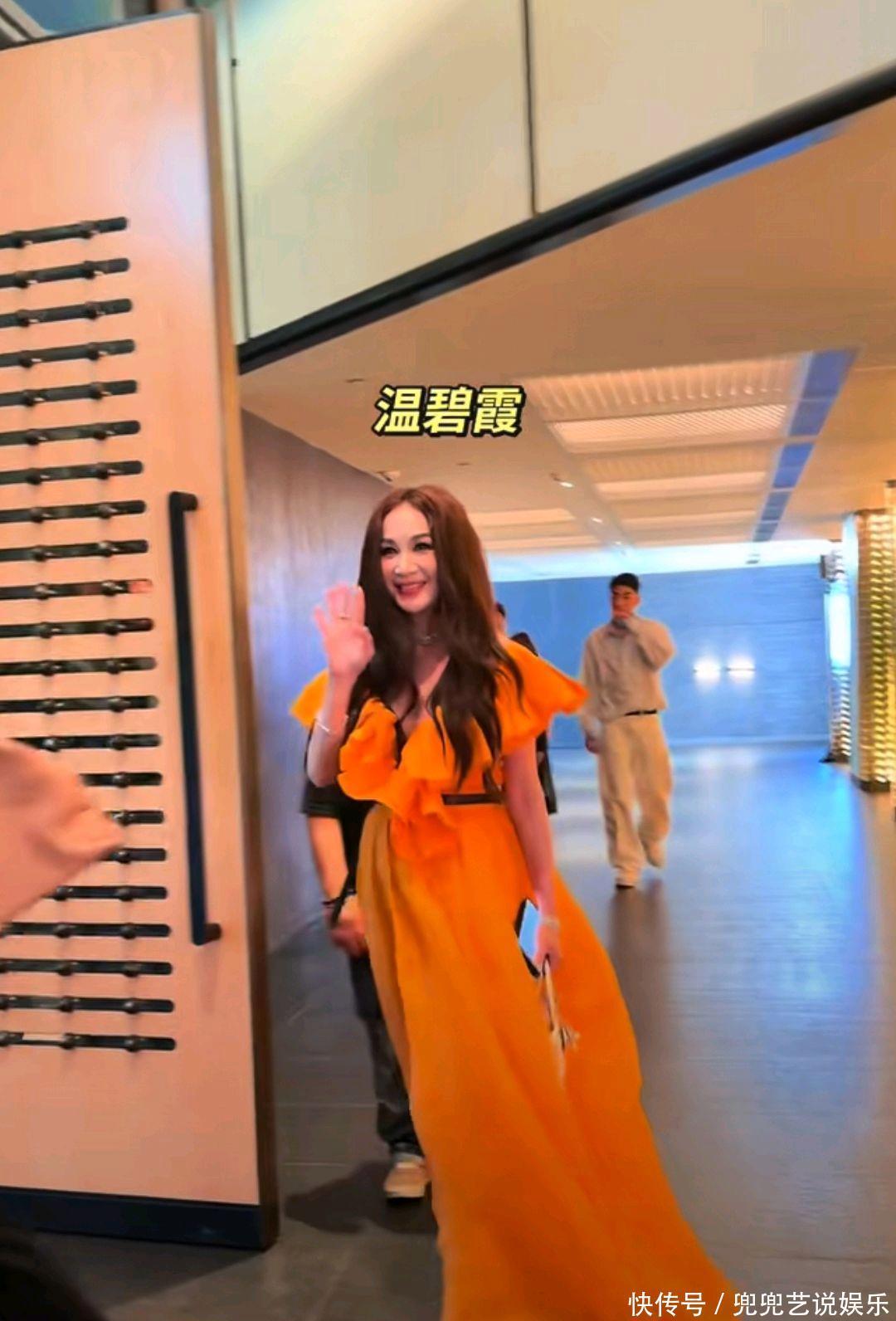 镜头前的温碧霞,以一袭亮眼的亮黄色长裙惊艳登场,一进场便频频向现场观众与镜头挥手致意,举止大方、亲和力十足,整个人状态饱满、活力四射,尽显冻龄魅力,丝毫不见岁月痕迹。这条礼服采用深V搭配荷叶肩的精致设计,巧妙勾勒出优美的肩颈线条,优雅展露迷人天鹅颈与精致锁骨,将女性的柔美与妩媚展现得淋漓尽致。