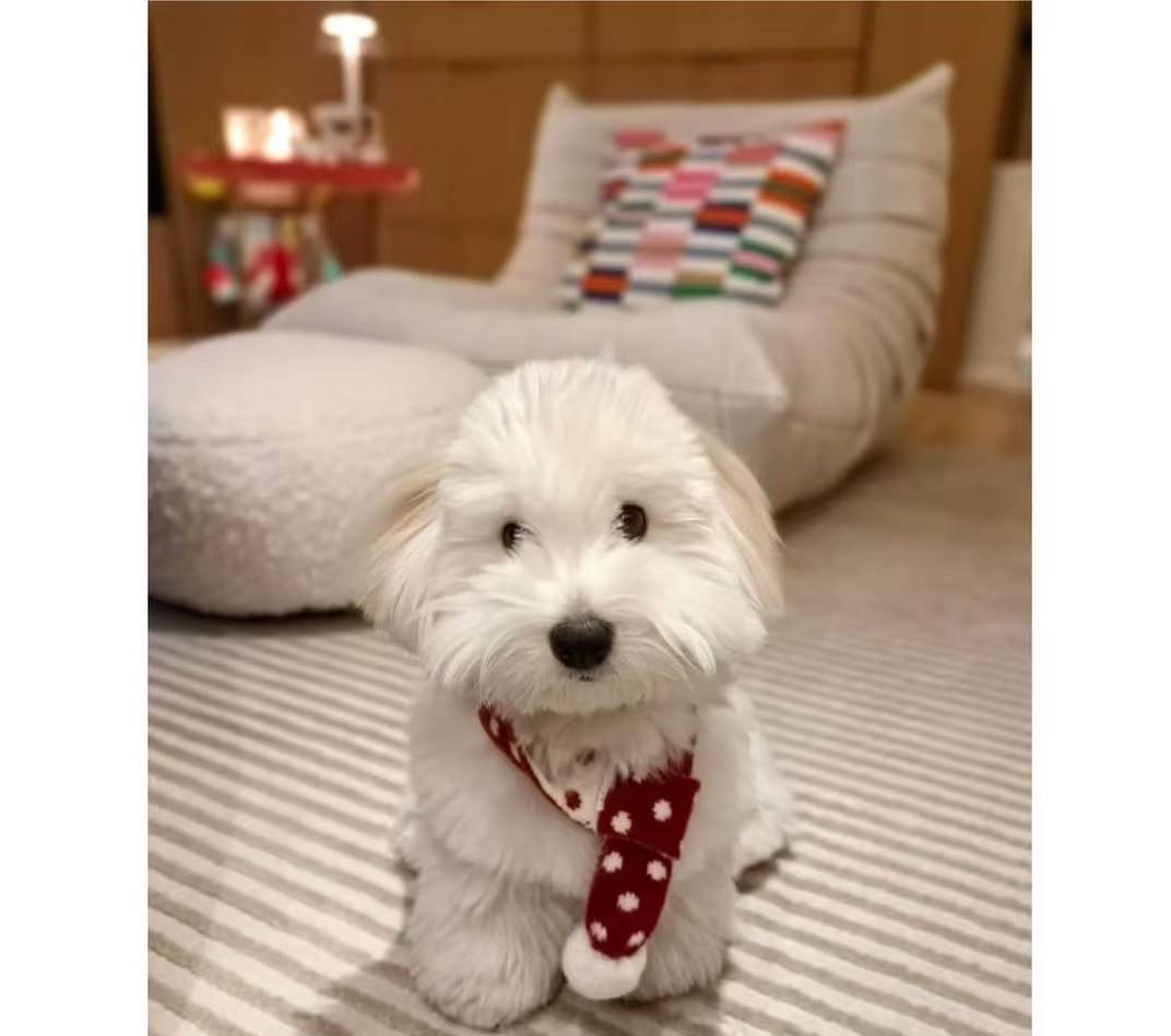 除了自己的照片之外, 她还单独晒出了爱犬哈哈的两张照片。