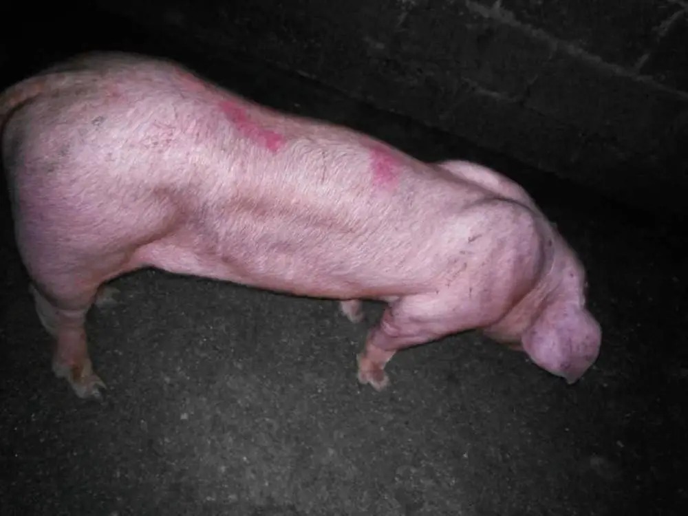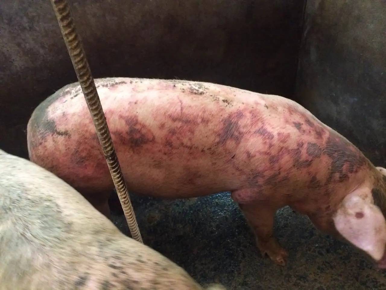 猪附红细胞体病同样会让猪的皮肤出现异常。附红细胞体是引发这种疾病的原因,病猪体温会升高到 40 - 42℃,精神萎靡不振,食欲严重减退。一开始皮肤发红,随着病情恶化会变为紫红色,同时可视黏膜会发黄,出现贫血症状。