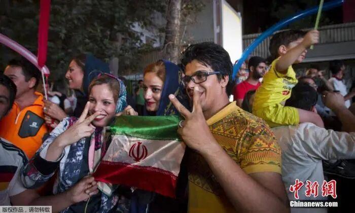 资料图:当地时间 2015年7月14日,伊朗德黑兰,伊朗民众在街头欢呼雀跃,庆祝伊核问题谈判达成全面协议。
