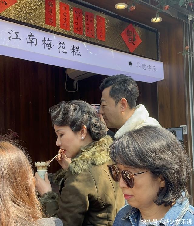 这样的小细节,真的能感受到夫妻间的真情。拍完照,郭涛还带李燃去吃苏州小吃,俩人一起排队买梅花糕,混在人群里一点都不端着,看着特别接地气。